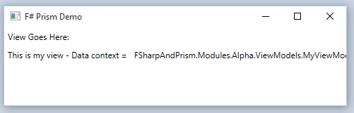 Prism Views aren’t that useful with out their ViewModel data contexts and those are usually passed in the constructor. So the first thing we want to do is subclass our the type that FsXaml created and add our own constructor. This, by the way, solves our Unity problem as well since our subclassed type won’t have the bogus constructor that FsXaml is creating.