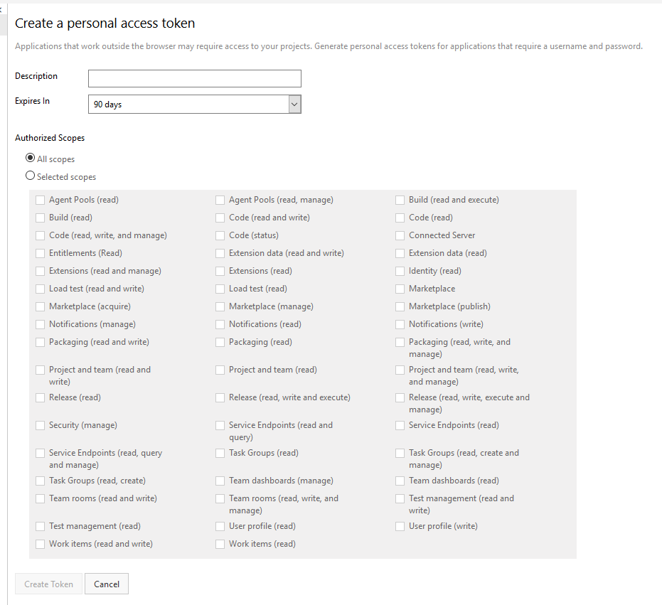 If you log into TFS 2017, in the corner under the settings there’s an “Access Tokens” setting.